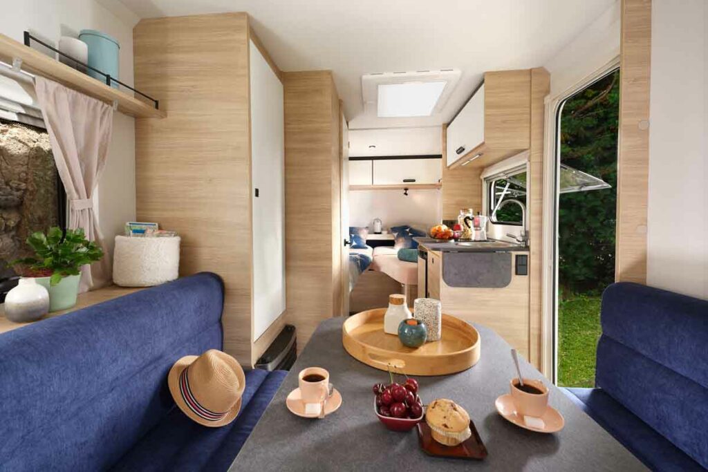 Deux vrais lits jumeaux à l’avant (transformables en king size), une grande dinette qui se convertit en couchage, une cuisine bien équipée et une vraie salle d’eau : la 462LJ coche toutes les cases pour ceux qui veulent de l’espace sans basculer dans le gabarit XXL. Parfaite pour voyager à deux ou à trois, en profitant d’un intérieur clair, fonctionnel et bien pensé.